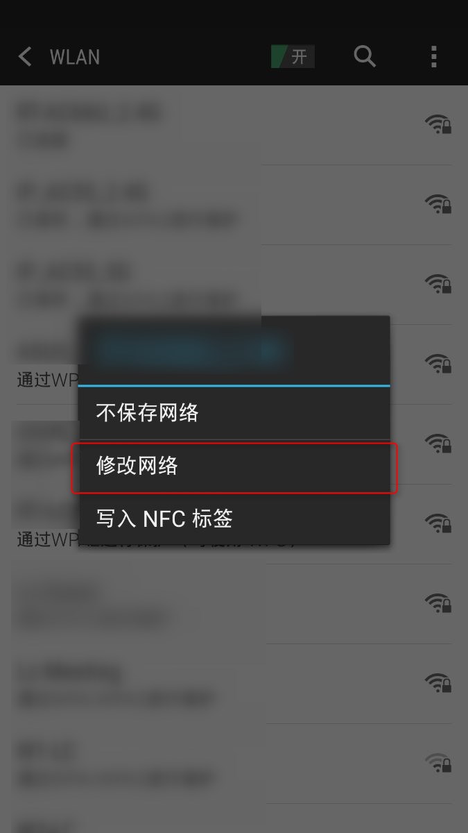 在弹出的菜单中选择"修改网络"或"网络设置"选项。